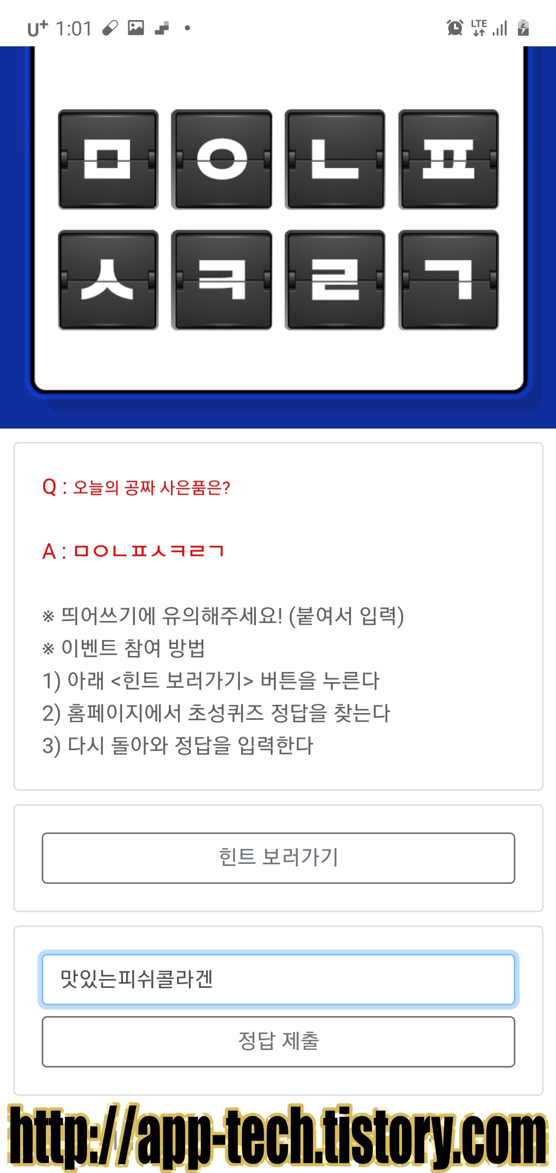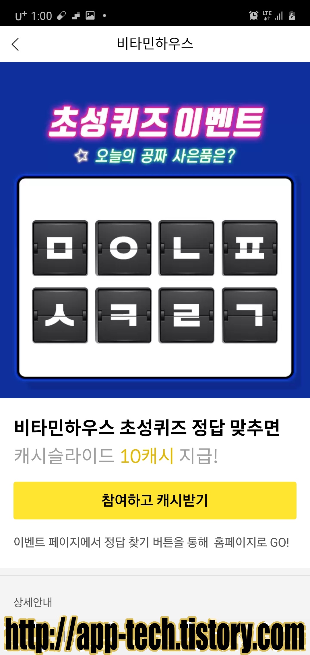 '20. 6. 28(일) 캐시슬라이드 스텝업 오늘의 퀴즈 정답!!