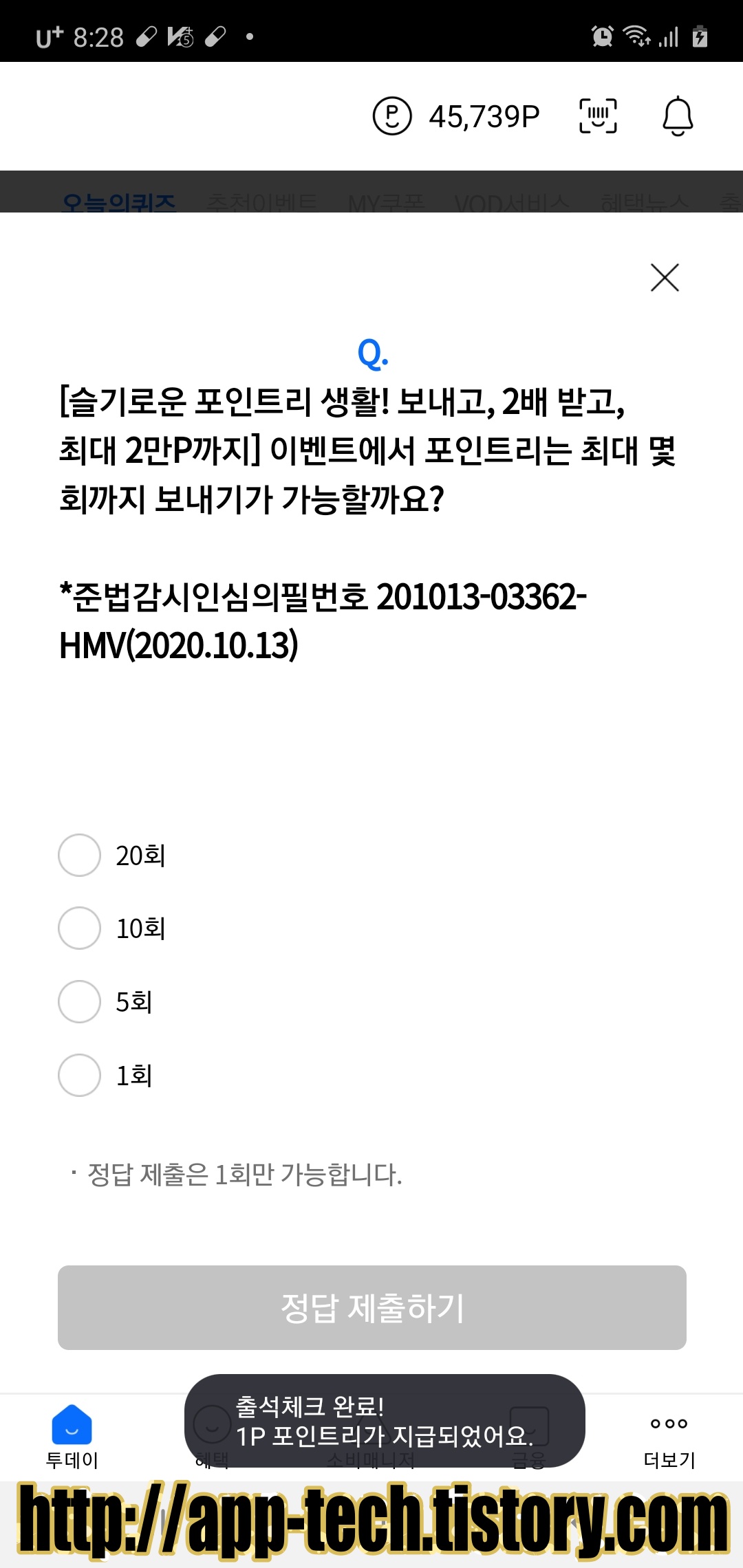 정답 맞추셔서 10포인트리 획득하시고