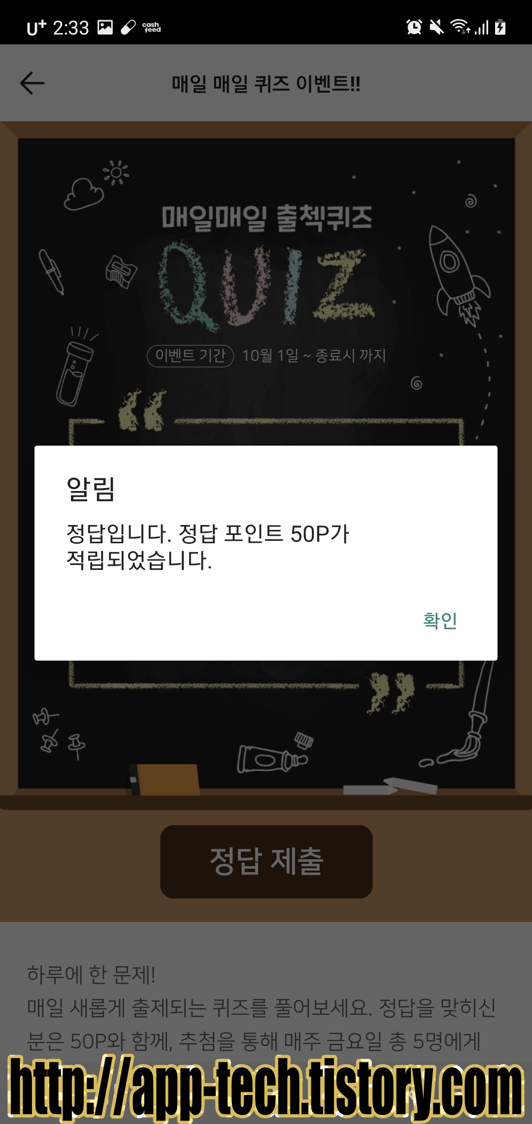 정답 맞추셔서 50포인트리 획득하시고