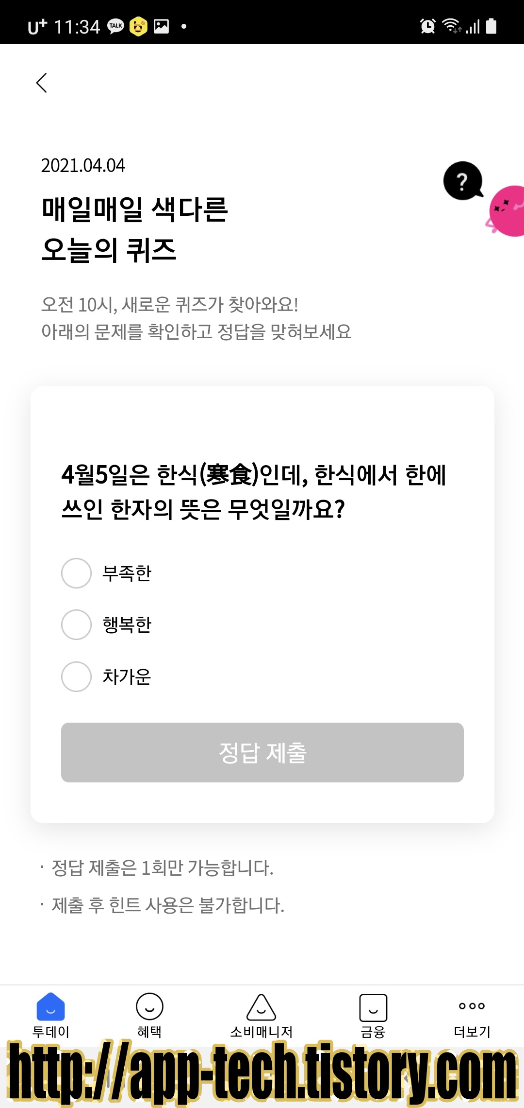 [앱테크] 리브메이트 오늘의 퀴즈!! 4월 3일 정답!! (0) | 2021.04.03 |