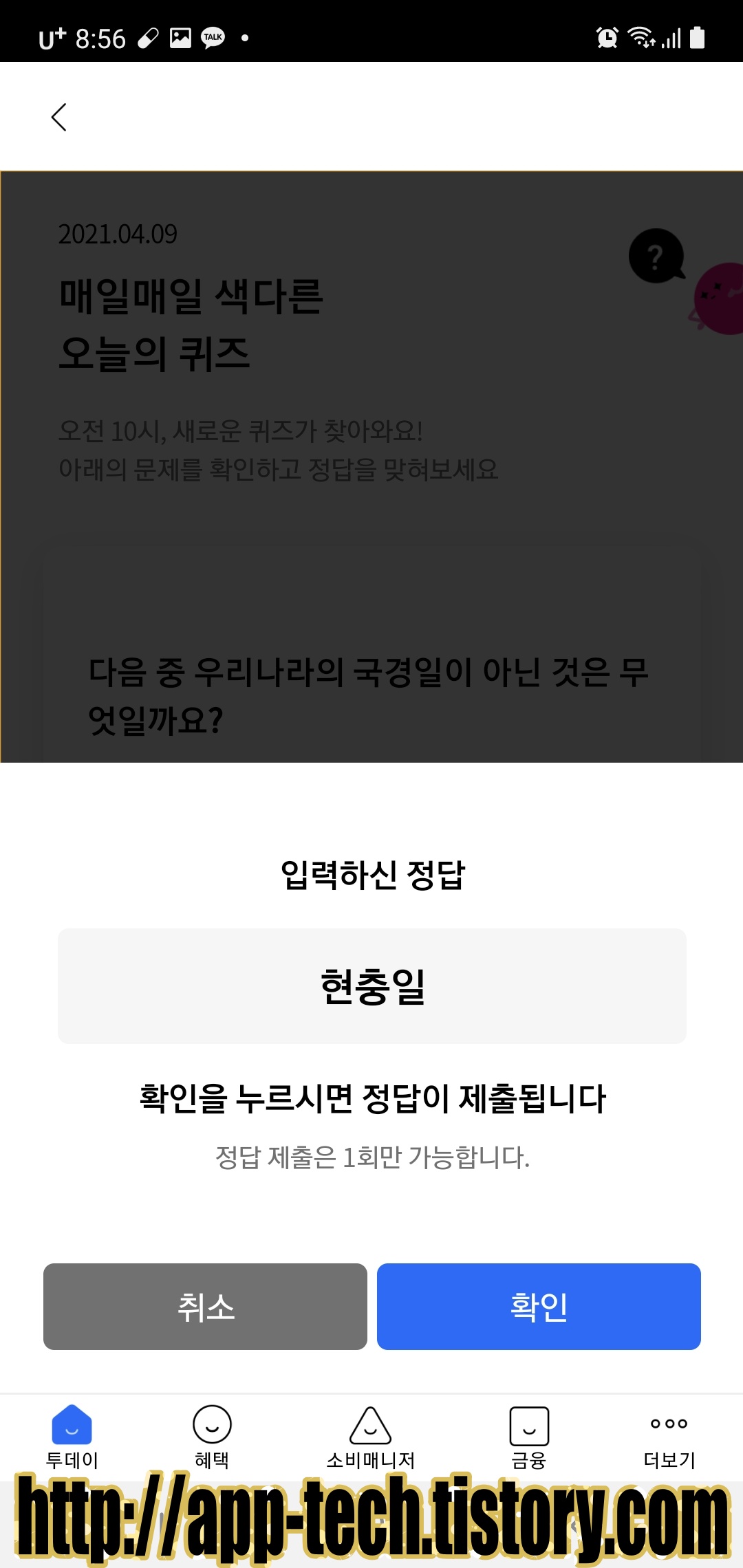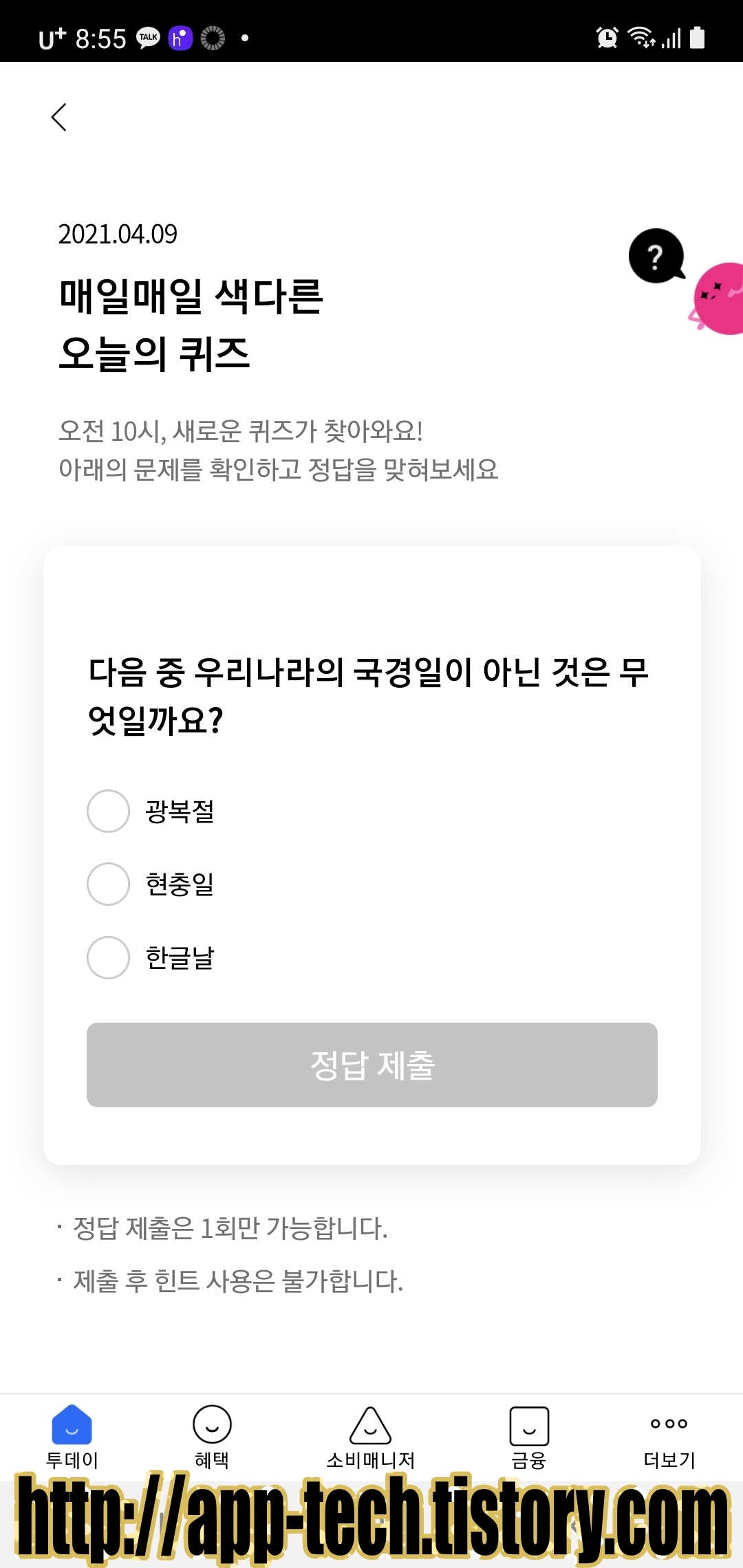 [앱테크] 리브메이트 오늘의 퀴즈!! 4월 4일 정답!! (0) | 2021.04.04 |