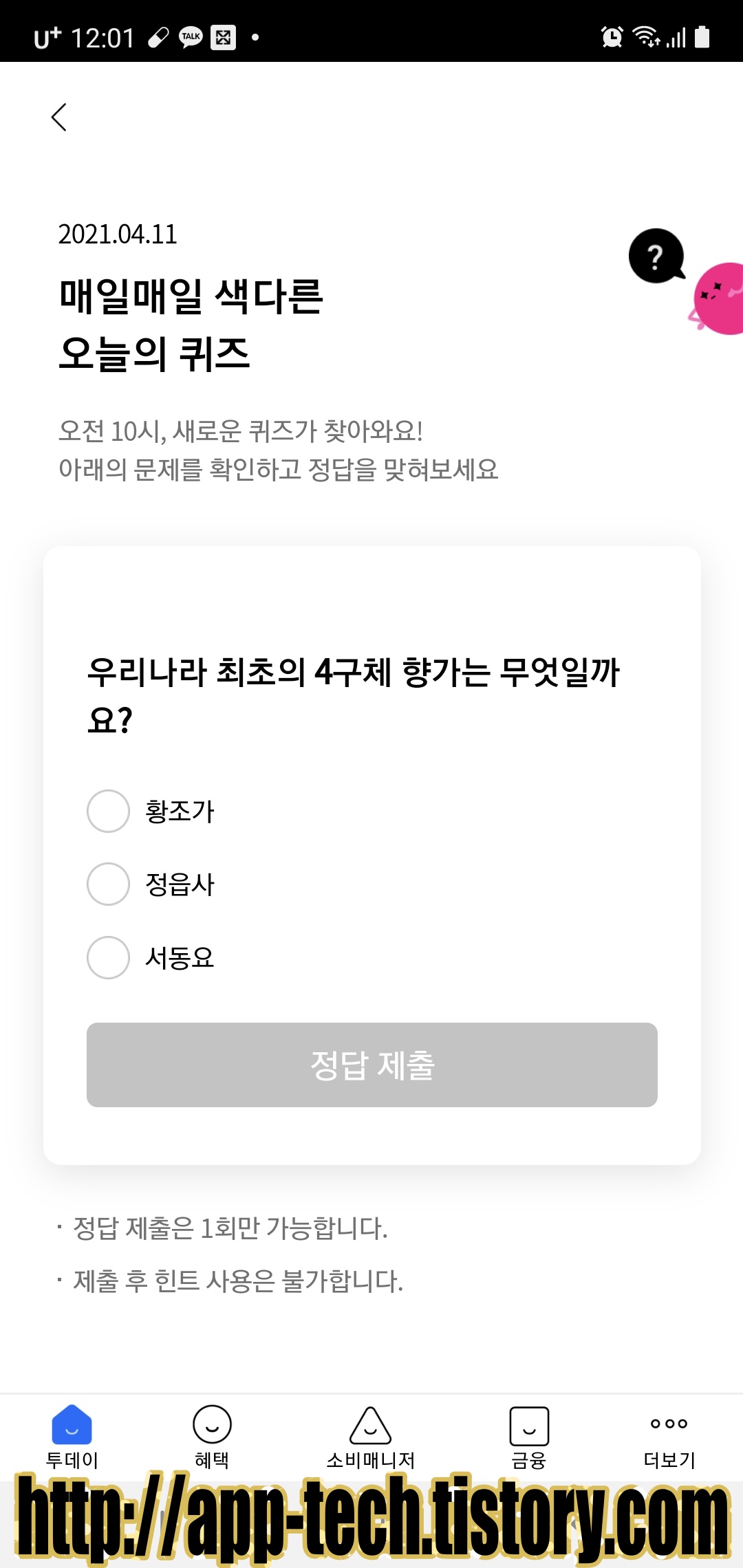 [앱테크] 리브메이트 오늘의 퀴즈!! 4월 10일 정답!! (0) | 2021.04.10 |