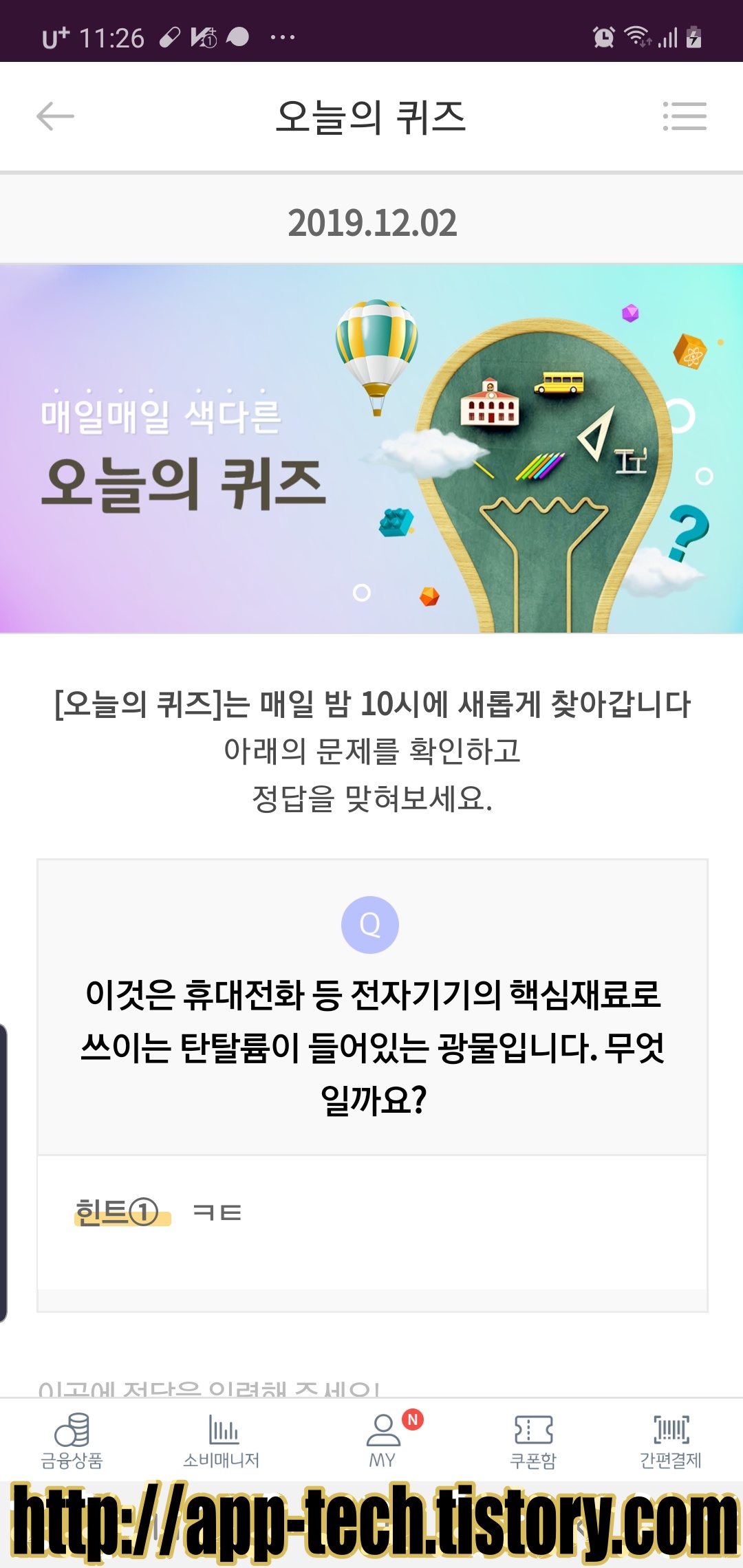 [앱테크] 리브메이트 오늘의 퀴즈 11월 29일 (0) | 2019.11.29 |