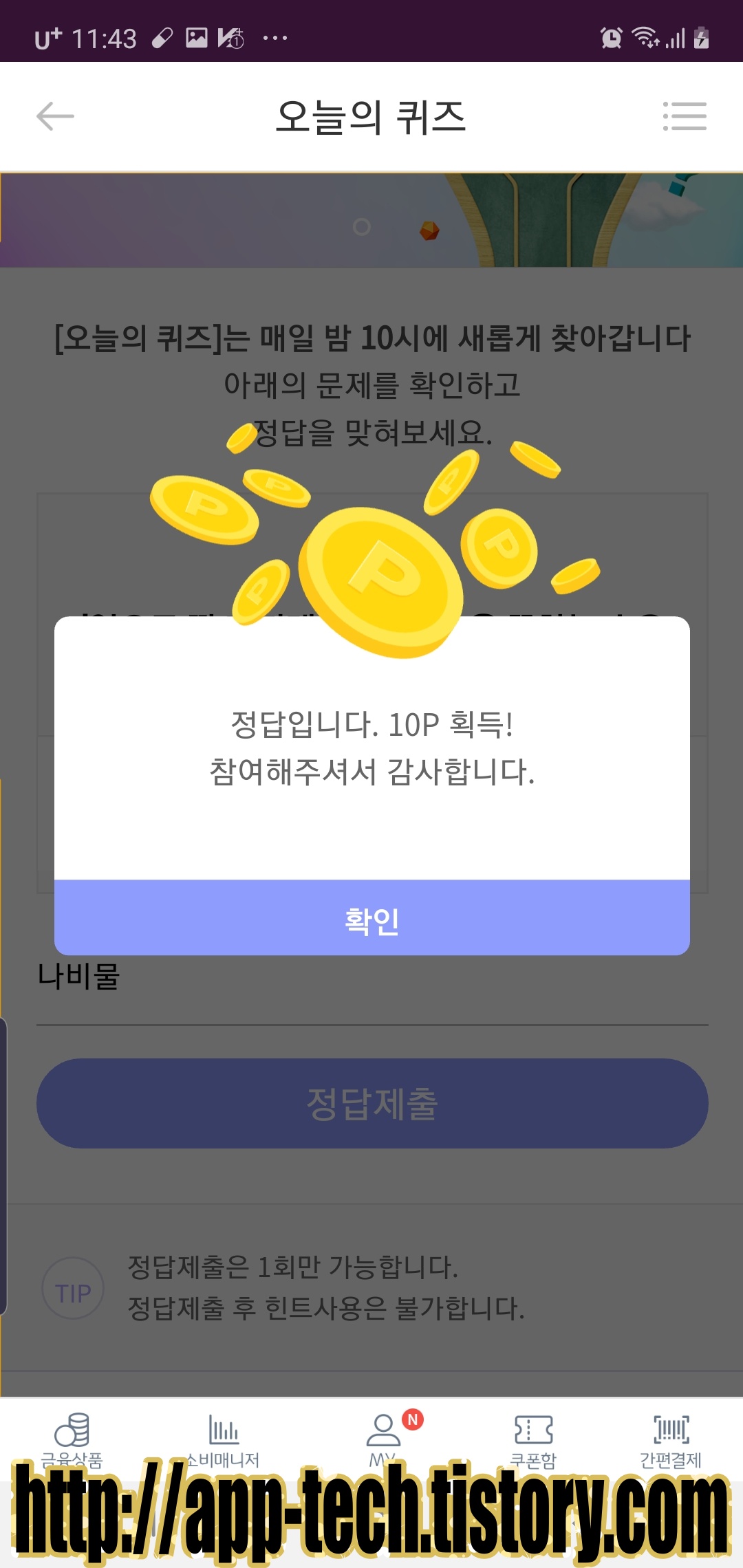 정답 맞추셔서 10포인트리 획득하시고