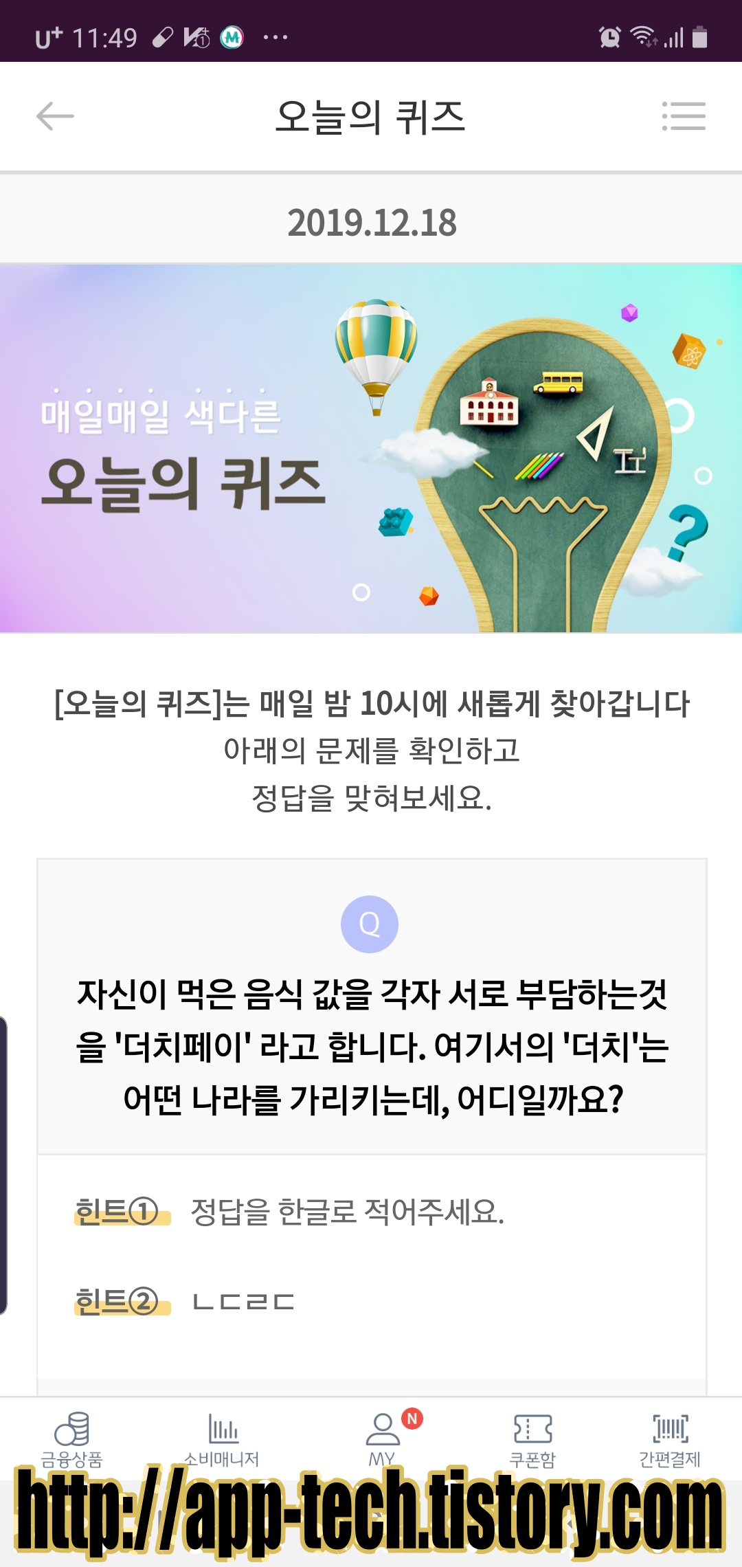 [앱테크] 리브메이트 오늘의 퀴즈 12월 19일 (0) | 2019.12.19 |