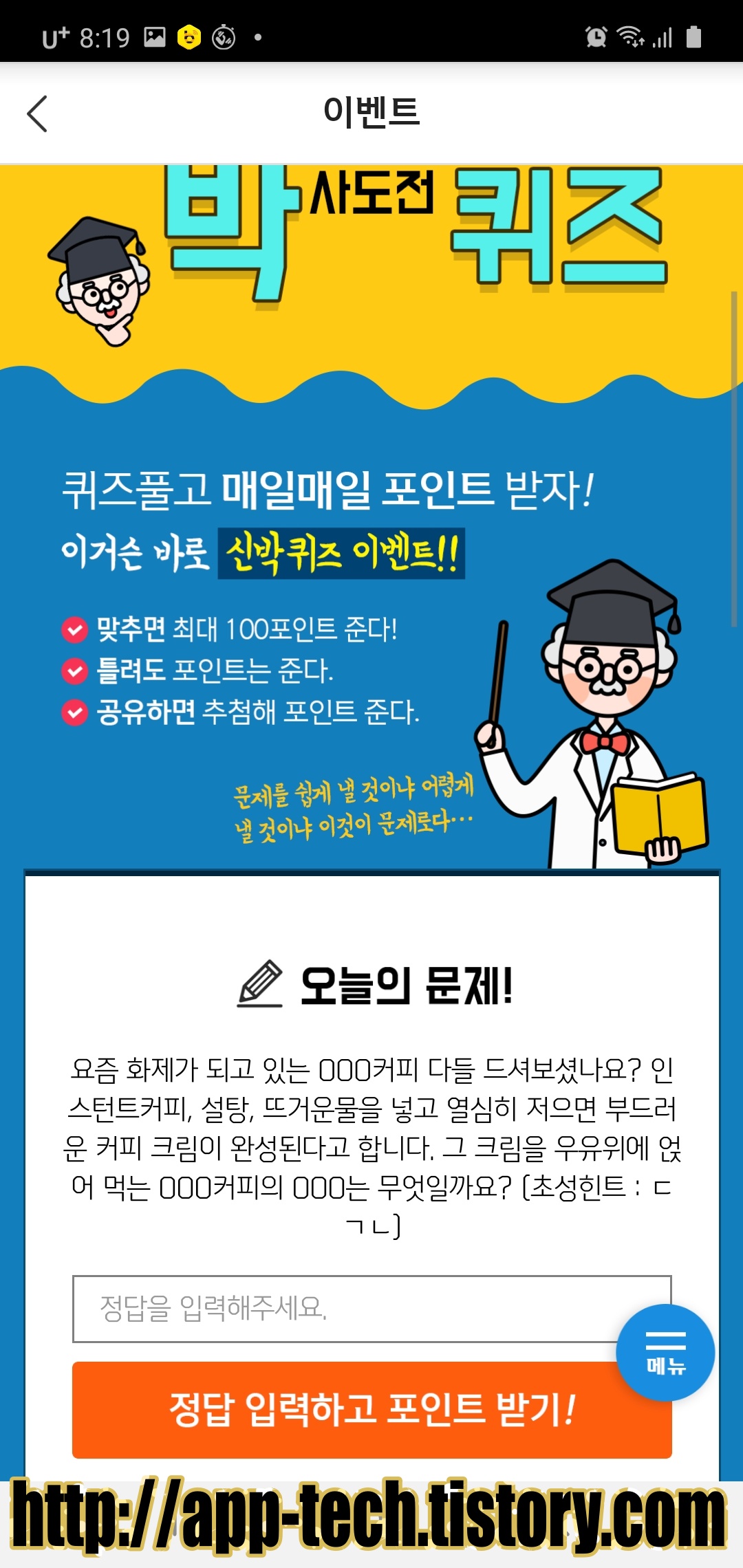 정답 맞추셔서 행운의 포인트 획득하시고