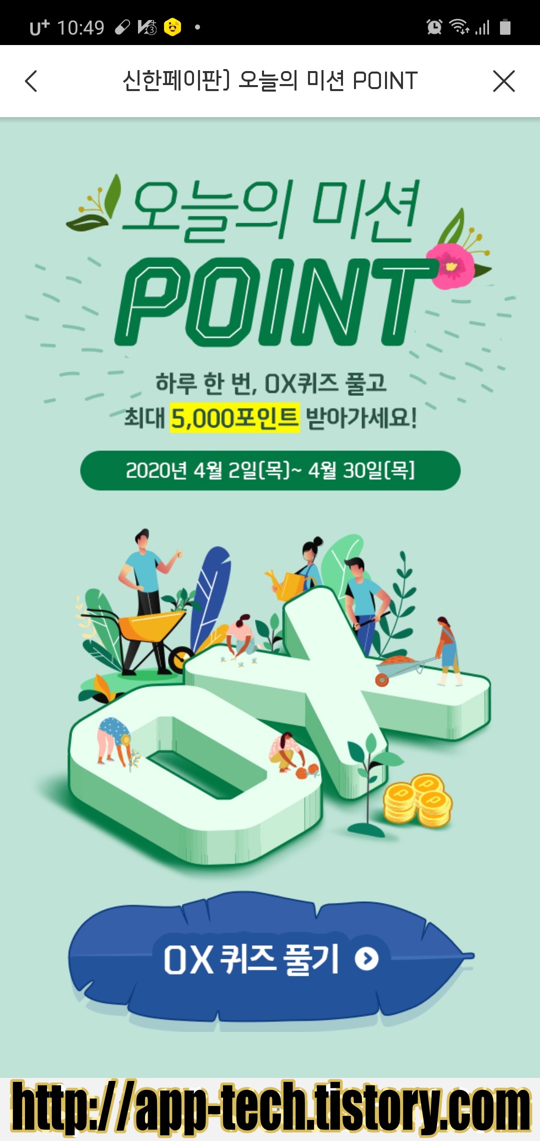 [앱테크] 신한페이판 신박한 퀴즈 이벤트 2탄!! 4월 18일 (0) | 2020.04.18 |