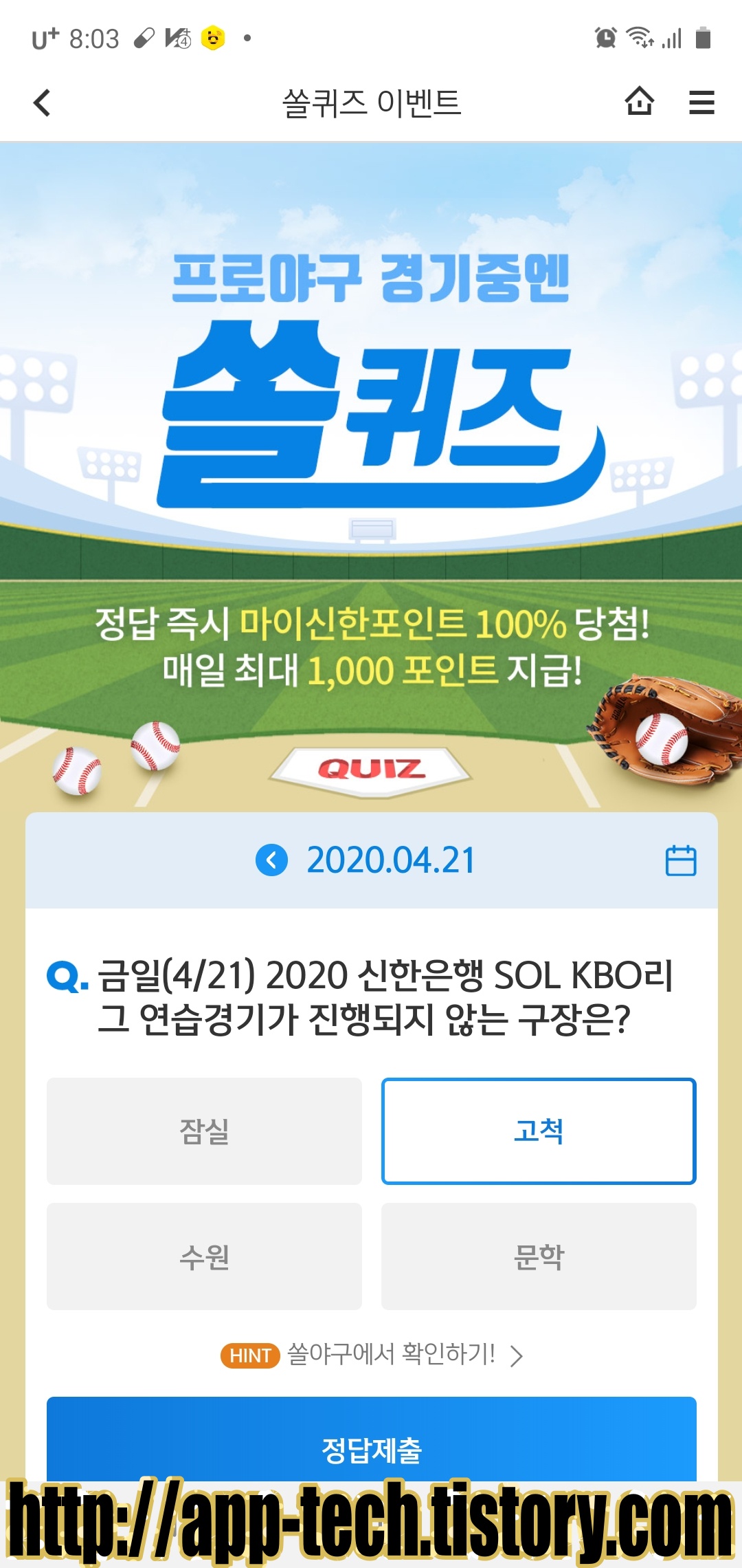 쏠야구 참여하기 → 야구상식 쏠퀴즈 접속!!